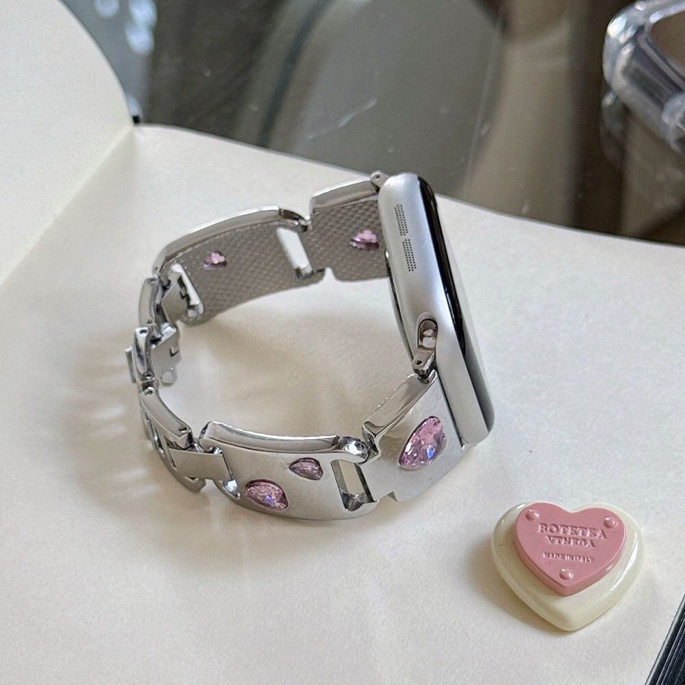 Apple watch stainless bracelet band /アップルウォッチ ハートビジュー y2k ステンレスベルトバンド 秋冬 オシャレアップルウォッチバンド y2k おしゃれ かわいい メンズ ユニセックス LL25111201