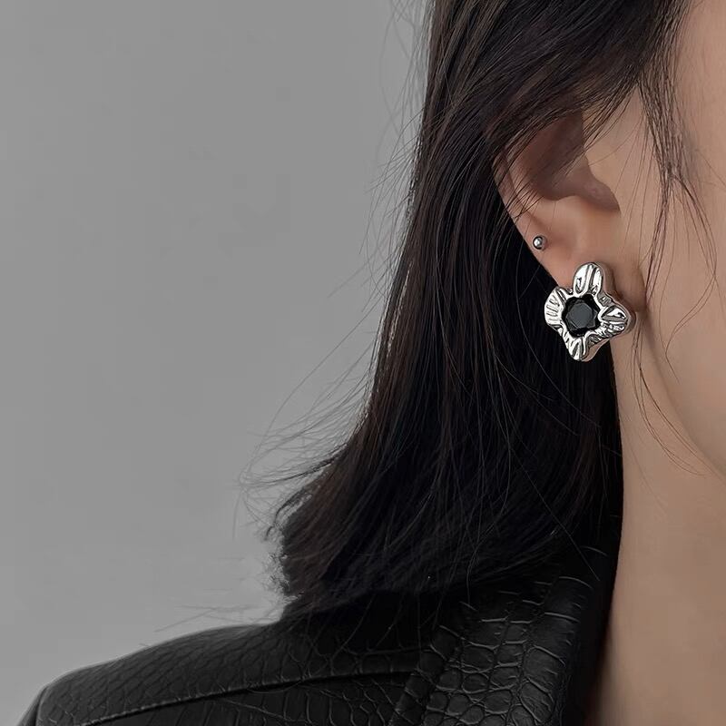 black stone nuance pierce sliver/ブラックストーンニュアンスピアス 925純銀針 LL23061203