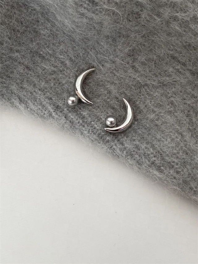 Simple Moon pierce /シンプルムーンシルバーピアス ニュアンス デザインピアス S925 ニュアンス 存在感ピアス LL23102602