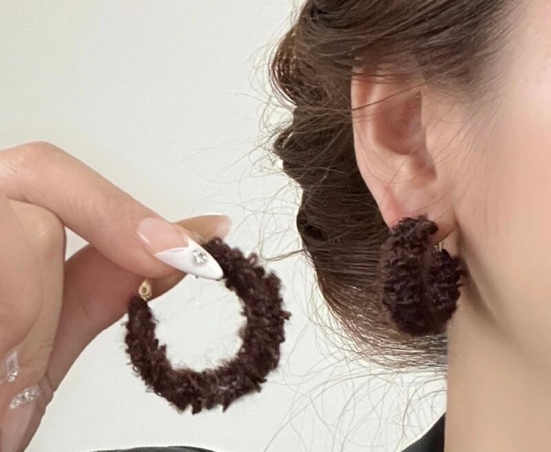 925sliver hoop pierce/シルバー925 モケモケフープピアス 大人かわいい 韓国アクセ シンプルピアス y2kアクセサリー 秋冬ピアス おしゃれ LL24100901