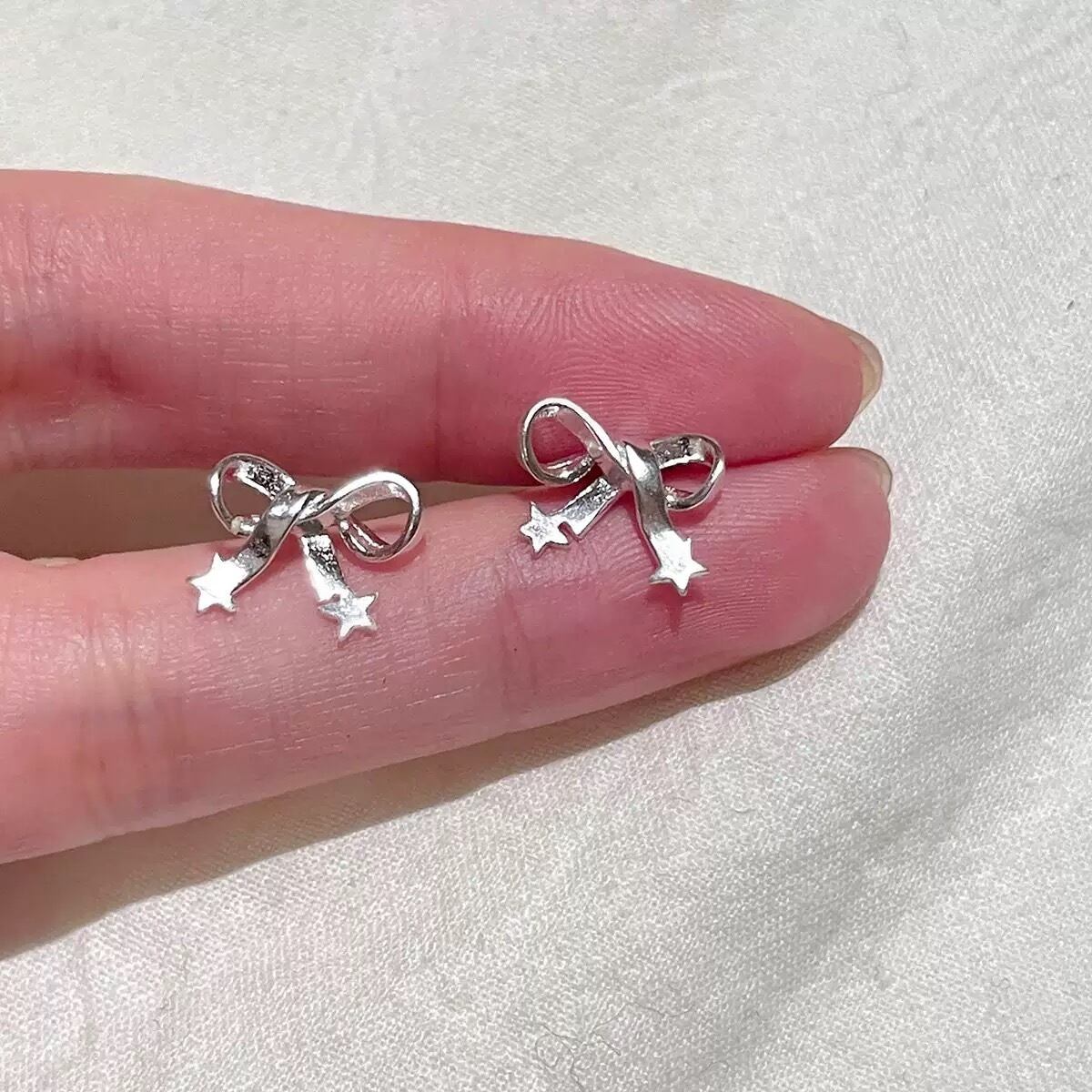 star ribbon pierce/リボンスター モチーフピアス バレエコア 大人かわいい 韓国アクセ シンプルピアス y2kアクセサリー 秋冬ピアス おしゃれ LL24111601