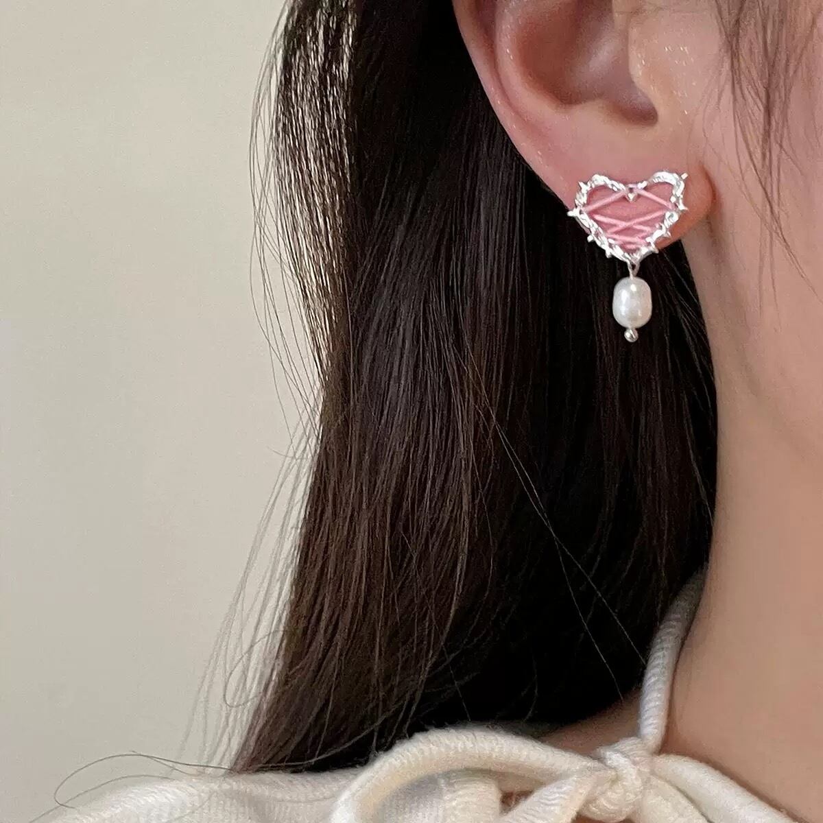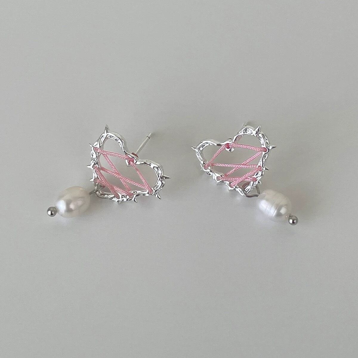 heart race sliver pierce/ハートレースアップシルバーピアス バレエコア 大人かわいい 韓国アクセ シンプルピアス y2kアクセサリー 秋冬ピアス おしゃれ LL24112001