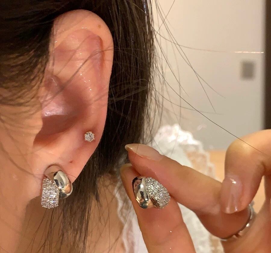 zirconia pierce/ジルコニアピアス バレエコア 大人かわいい 韓国アクセ シンプルピアス y2kアクセサリー 秋冬ピアス おしゃれ メンズ LL24122601
